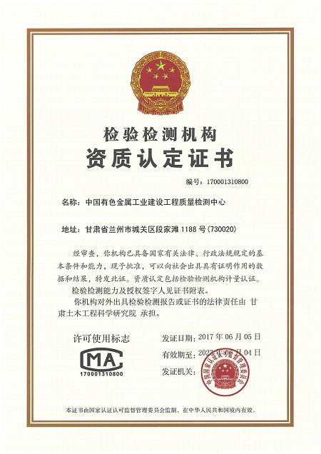 中國有色金屬工業(yè)建設(shè)工程質(zhì)量檢測中心自1995年初次通過國家級檢驗檢測機構(gòu)資質(zhì)認定,法律地位明確,組織機構(gòu)健全,人員能力、儀器設(shè)備配置、場所環(huán)境條件等均滿足檢驗檢測工作要求。具備建筑材料、巖土工程、工程結(jié)構(gòu)、建筑節(jié)能、室內(nèi)環(huán)境、鋼結(jié)構(gòu)檢測能力,通過了17類產(chǎn)品,147個參數(shù)的檢測能力認定。期間經(jīng)歷多次監(jiān)督評審、換證復(fù)評審,持續(xù)有效運行25年。